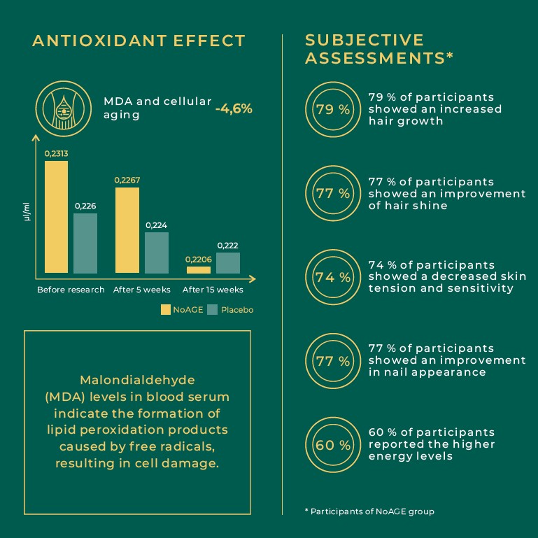 The research aims: to evaluate the impact of the NoAGE nutritional supplement on the changes in women’s facial skin and blood parameters.