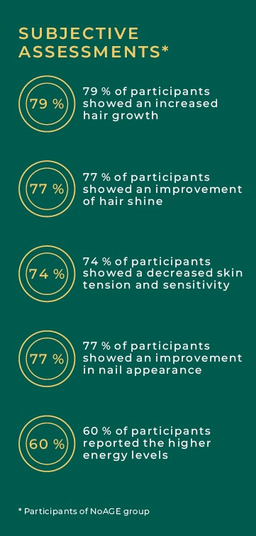 The research aims: to evaluate the impact of the NoAGE nutritional supplement on the changes in women’s facial skin and blood parameters.